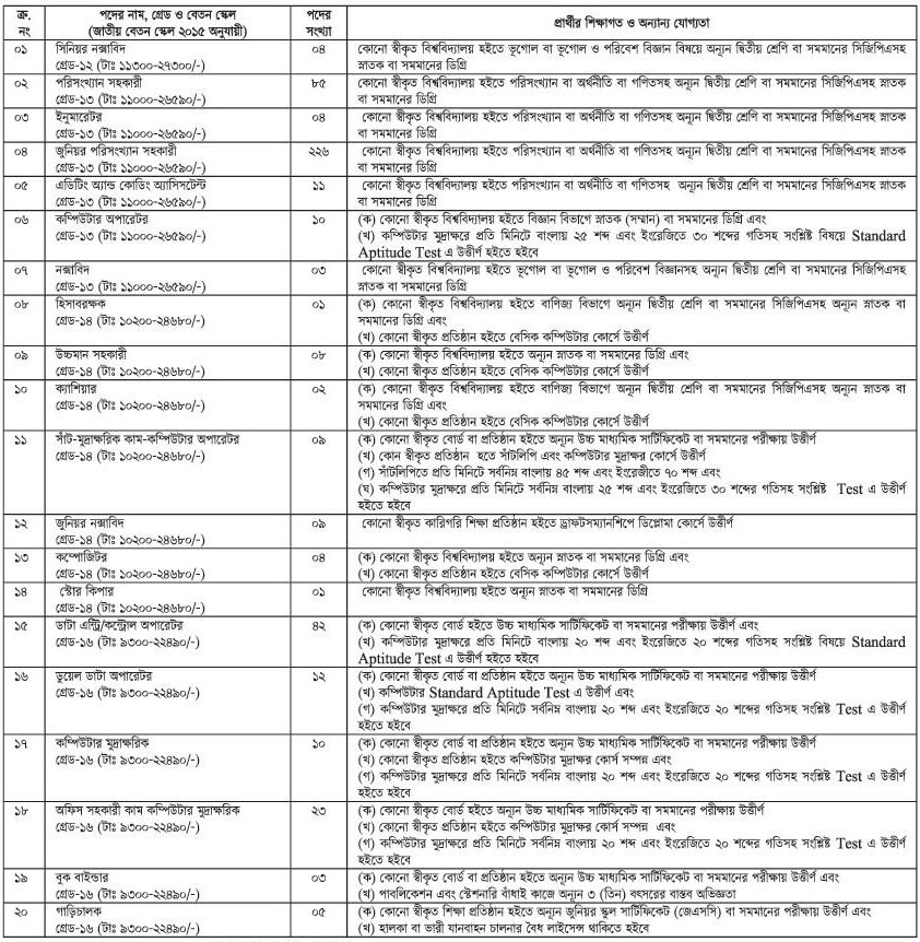 আবেদনের নিয়ম: আগ্রহীরা বাংলাদেশ পরিসংখ্যান ব্যুরো এর মাধ্যমে আবেদন করতে পারবেন। আবেদনের সঙ্গে ৩০০-৩০০ সাইজের ছবি ও ৩০০-৮০ সাইজের স্বাক্ষর স্ক্যান করে যুক্ত করতে হবে।