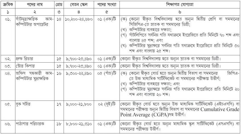 আবেদন ফি: টেলিটক প্রি-পেইড সিমের মাধ্যমে ১-৪ নং পদের জন্য ১১২ টাকা, ৫-৬ নং পদের জন্য ৫৬ টাকা অফেরতযোগ্য হিসেবে ৭২ ঘণ্টার মধ্যে পাঠাতে হবে।