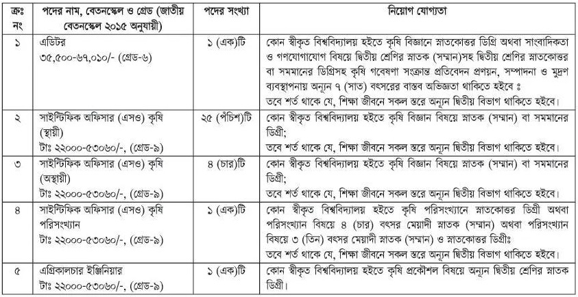 বাংলাদেশ ধান গবেষণা ইনস্টিটিউটে (ব্রি) ৫টি পদে ৩২ জনকে নিয়োগ দেওয়া হবে। আগ্রহীরা আগামী ৩০ অক্টোবর বিকেল ৫টা পর্যন্ত অনলাইনের মাধ্যমে আবেদন করতে পারবেন। অনলইন ব্যতিত অন্য কোনো মাধ্যমে আবেদন গ্রহণযোগ্য হবে না।