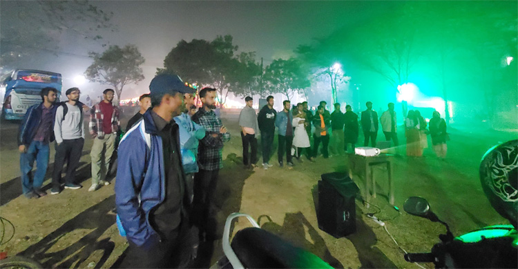 বুধবার (১২ ফেব্রুয়ারি) সন্ধ্যা সাড়ে ৭টার দিকে বিশ্ববিদ্যালয়ের মুক্তমঞ্চে বড় পর্দায় শর্টফিল্মটি প্রদর্শিত হয়। এসময় বিশ্ববিদ্যালয়ের শতাধিক শিক্ষার্থী উপস্থিত ছিলেন।