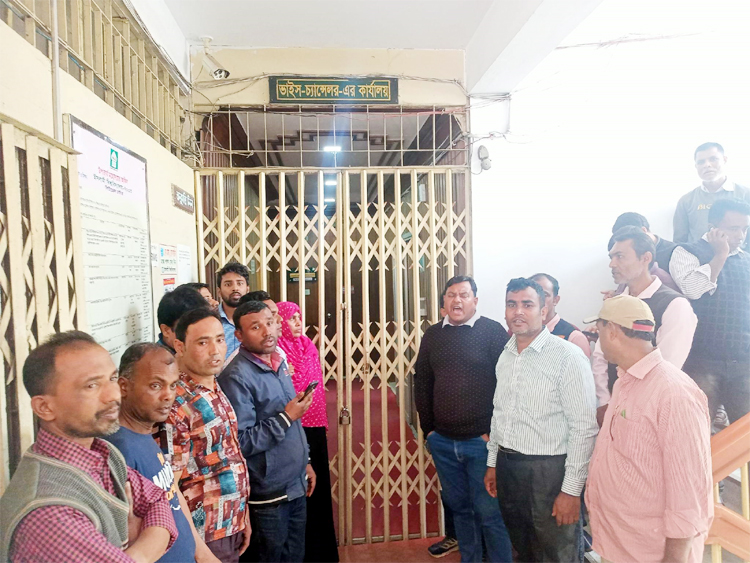 ভিসির কার্যালয়ে তালা দিয়ে সাবেক ছাত্রলীগ নেতাকর্মীদের বিক্ষোভ