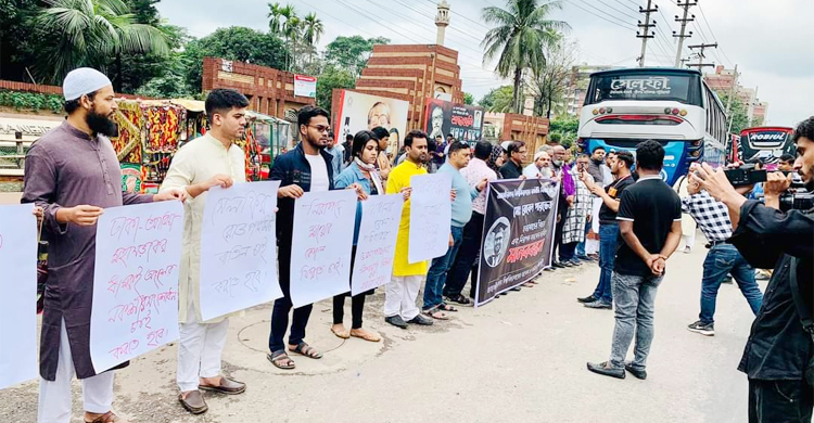 সেলফি পরিবহনের রুট পারমিট বাতিলের দাবিতে জাবিতে মানববন্ধন