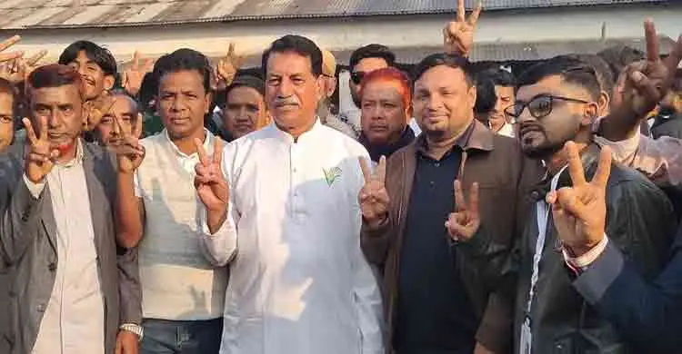 নিজ কেন্দ্রে ভোট দেওয়া শেষে স্থানীয় নেতাকর্মীদের সঙ্গে বিএনপির যুগ্ম-মহাসচিব ও ধানের শীষের প্রার্থী খায়রুল কবির খোকন/ প্রতিনিধির পাঠানো ছবি