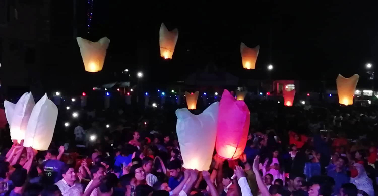 ফানুস উড়িয়ে নিজেদের স্বপ্ন জানাল এক হাজার তরুণ-তরুণী