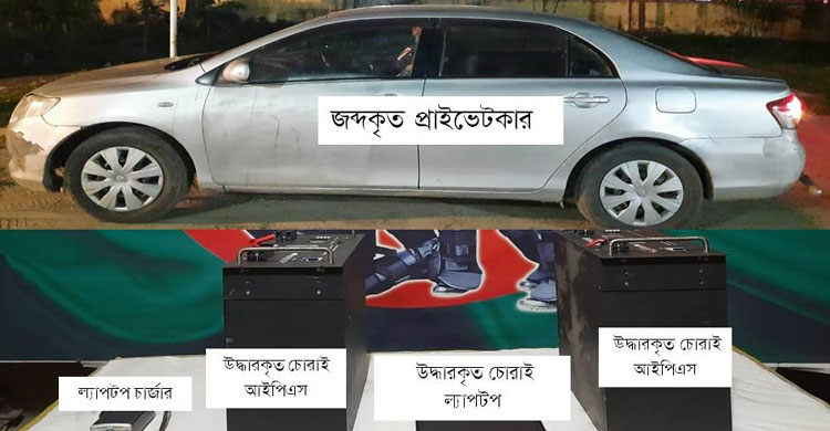 মোবাইল টাওয়ারের আইপিএস চোর প্রাইভেটকারসহ আটক