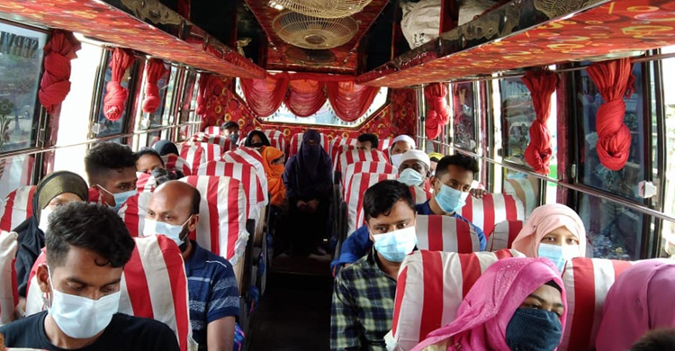 মঙ্গলবার (২৫ মে) দুপুরে কুমিল্লার কেন্দ্রীয় বাস টার্মিনাল জাঙ্গালিয়া, চকবাজার ও শাসনগাছা বাস টার্মিনাল ঘুরে দেখা গেছে, আন্তঃজেলা বাস ও মিনিবাসে যাত্রী পরিবহনে স্বাস্থ্যবিধির বালাই নেই। আসনের অতিরিক্ত যাত্রী না তোলা, যাত্রী ও পরিবহন শ্রমিকদের মাস্ক ব্যবহার এবং জীবাণুনাশকের ব্যবস্থা রাখাসহ কোনো নির্দেশনা মানতে দেখা যায়নি। দুই সিটেই যাত্রী পরিবহন করতে দেখা গেছে।