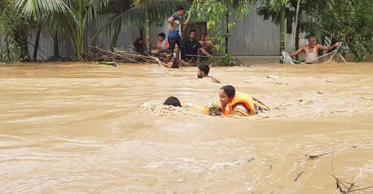 ঝিনাইগাতীতে বন্যার পানিতে আটকেপড়া ছয় পরিবারের ২৬ জনকে উদ্ধার