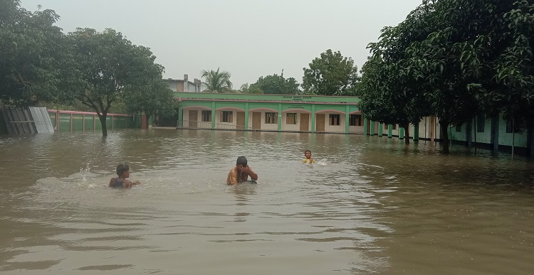 বৃষ্টিতে বিদ্যালয়ে হাঁটু পানি, শিক্ষাকার্যক্রম ব্যাহত