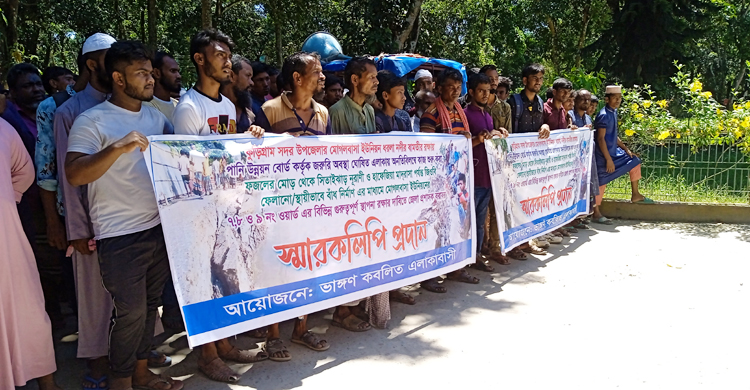 নদীভাঙন থেকে চর সিতাইঝাড় গ্রাম রক্ষায় মানববন্ধন