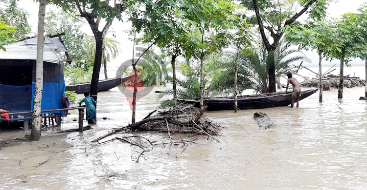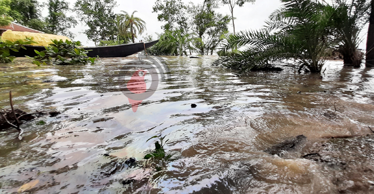 মোংলায় কালাইনগর বাঁধ ভেঙে গ্রামে ঢুকলো পানি