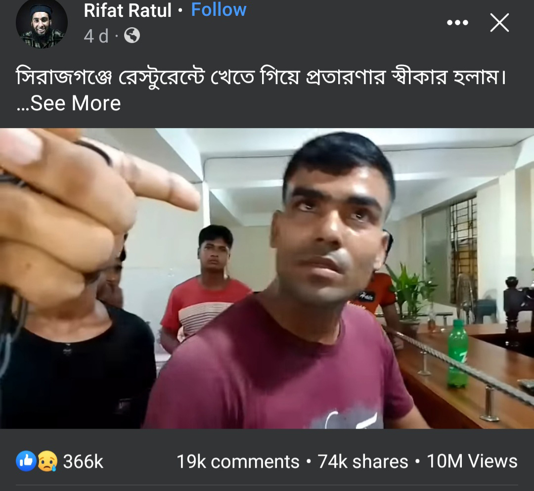 খোঁজ নিয়ে জানা যায়, যাত্রা বিরতিতে ওই হোটেলে খেতে যান রিফাত রাতুল নামের এক যুবক। তার কাছ থেকে খাবারের দাম বেশি রাখা হয়। এ নিয়ে ধারণ করা একটি ভিডিও ২০ আগস্ট ফেসবুকে পোস্ট করেন রিফাত। ভিডিওটি মুহূর্তের মধ্যে ভাইরাল হয়।