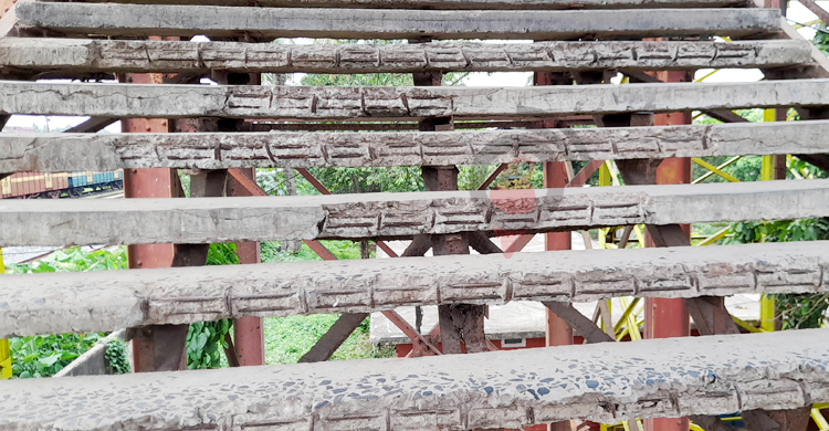 ঝুঁকি নিয়ে শতবর্ষী ফুটওভার ব্রিজ দিয়ে চলাচল