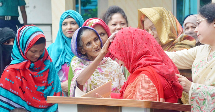 বৃদ্ধা মনিজা ও তার নাতনির অসহায়ত্বের কথা জানতে পেরে তাদের দিকে সহযোগিতার হাত বাড়ান পুনাক সভানেত্রী।