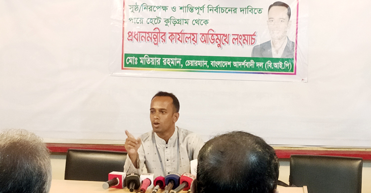 কুড়িগ্রাম থেকে প্রধানমন্ত্রীর কার্যালয় অভিমুখে পায়ে হেঁটে লং মার্চ শুরু করেছেন নব্য রাজনৈতিক দল হিসেবে আত্মপ্রকাশ করা বাংলাদেশ আদর্শবাদী দলের (বিআইপি) চেয়ারম্যান মো. মতিয়ার রহমান।