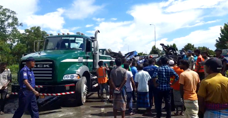 বৃহস্পতিবার (৬ অক্টোবর) দুপুর সাড়ে ১২টার দিকে বঙ্গবন্ধু সেতুপূর্ব ওজন স্টেশনের কাছে এ দুর্ঘটনা ঘটে। তাৎক্ষণিক হতাহতদের নাম-পরিচয় পাওয়া যায়নি।