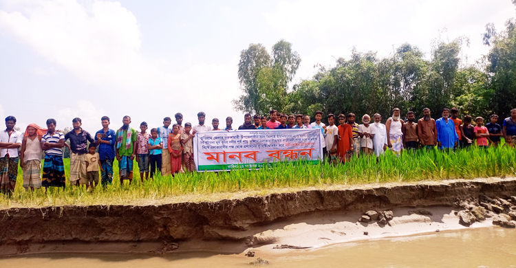মানববন্ধনে বক্তারা বলেন, নদী ভাঙনে শতশত বাড়িঘর ও ফসলি জমি, স্কুল, মসজিদ, মাদরাসাসহ বিভিন্ন স্থাপনা নদীগর্ভে হারিয়ে গেলেও ভাঙন রোধে উদাসীন পানি উন্নয়ন বোর্ড। তাই দ্রুত ভাঙনরোধে পদক্ষেপ গ্রহণের দাবি জানান তারা।