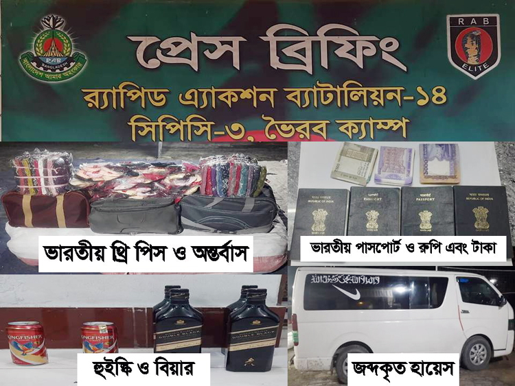 তাদের কাছ থেকে সাড়ে পাঁচ হাজার পিস ভারতীয় অন্তর্বাস, ১২০ পিস ভারতীয় থ্রি পিস, চার বোতল হুইস্কি, দুই বোতল বিয়ার উদ্ধার করা হয়। জব্দ করা হয় পাচার কাজে ব্যবহার করা গাড়ি ও ভারতীয় নাগরিকদের চারটি পাসপোর্ট।