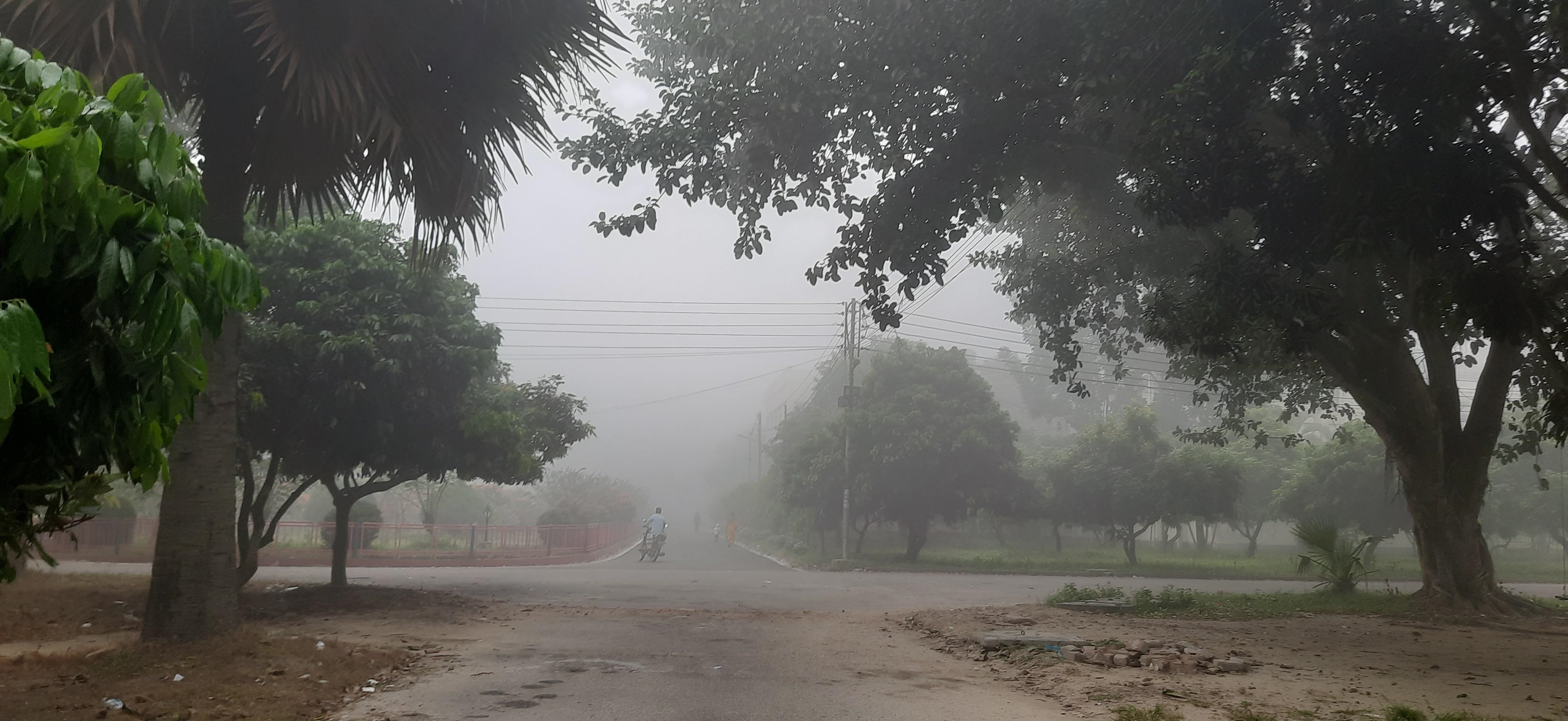 কুয়াশায় মোড়ানো সকাল জানান দিচ্ছে শীতের