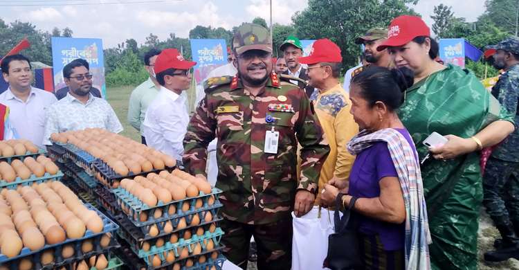 সেনাবাহিনীর গুইমারা রিজিয়ন ও স্বেচ্ছাসেবী সংগঠন বিদ্যানন্দ ফাউন্ডেশনের আয়োজনে গুইমারা সরকারি কলেজ মাঠে ‘গরিবের সুপার শপে’ ১০ টাকায় প্রয়োজনীয় পণ্য কেনার সুযোগ পেয়েছেন নিম্নআয়ের মানুষ।