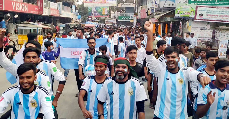 মিছিলে অংশ নেওয়া সিয়াম জয় বলেন, আমরা আশাবাদী আজকে আর্জেন্টিনা জিতবে। প্রিয় দলের প্রতি সমর্থন জানিয়ে সবাই একত্রিত হয়েছি। আর্জেন্টিনা ও মেসিদের জন্য শুভকামনা।