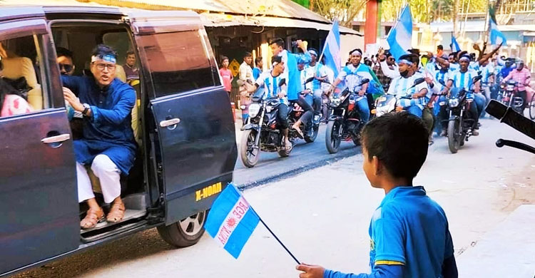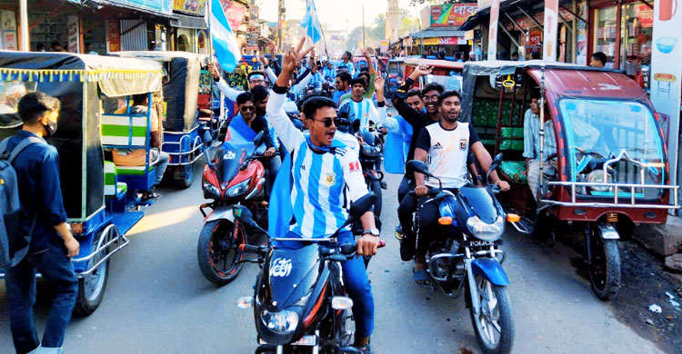 কুড়িগ্রামে আর্জেন্টিনা ফ্যানস ক্লাবের মোটরসাইকেল শোভাযাত্রা