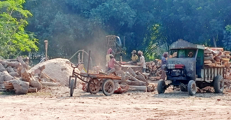 এদিকে, উপজেলার শাদীপুর ফসলের মাঠ এখন ইটভাটার দখলে। এই এলাকায় ইটের ভাটা পাঁচটি। যার মধ্যে একটিতে কয়লার জ্বালানির আয়োজন থাকলেও তা অব্যবহৃত। ওই ভাটাতেই বসানো হয়েছে কাঠ ফাঁড়ার মেশিন। সেখানকার কমবেশি সব ভাটাতেই স’ মিল বসিয়ে গাছ কেটে জ্বালানি তৈরি করা হয়।