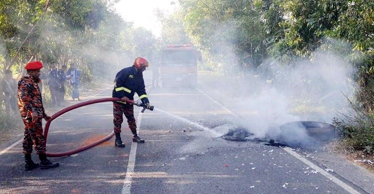 ফরিদপুরে সড়কে টায়ারে আগুন, ককটেল বিস্ফোরণ