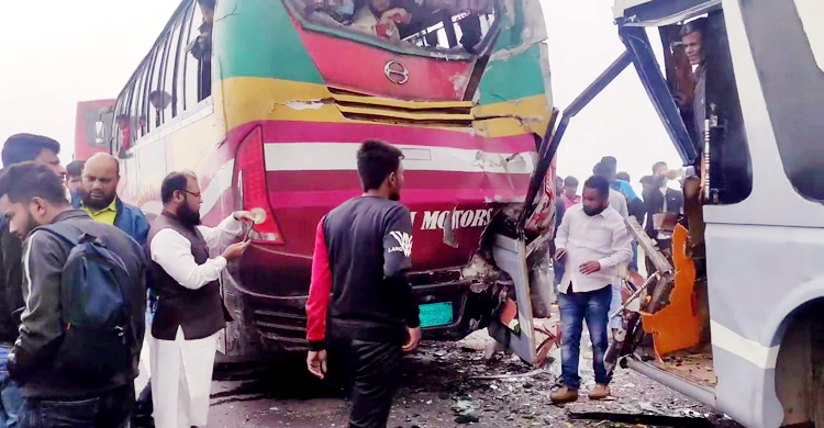 ঘন কুয়াশায় পদ্মা সেতুতে দুর্ঘটনার কবলে তিন বাস, আহত ৫