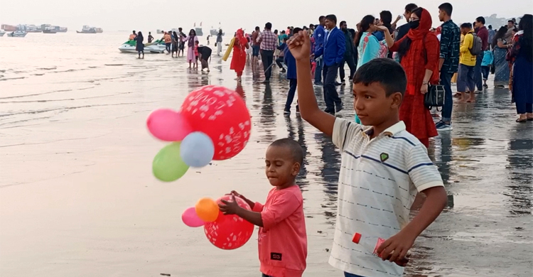 টানা ছুটিতে পর্যটকে টইটম্বুর কুয়াকাটা