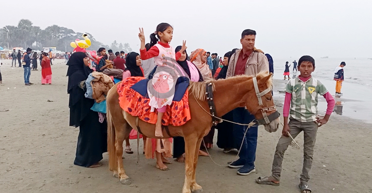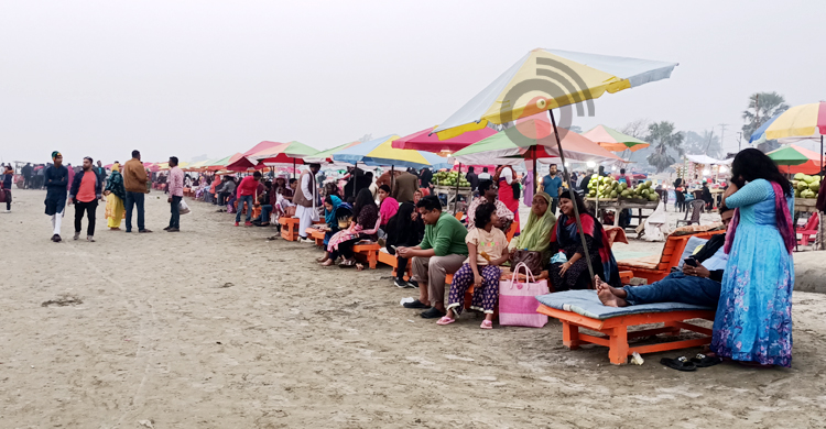 শনিবার (৩১ ডিসেম্বর) বিকেলে সৈকতের বিভিন্ন পয়েন্ট ঘুরে দেখা যায়, মৃদু বাতাসে সৈকতের নারিকেলকুঞ্জ ও ঝাউবাগানের পত্রমালাও সাগরের ঢেউয়ের সঙ্গে দুলছে। গোটা সৈকতে জোয়ারে ভেসে আসা ছোটছোট ঝিনুক যেন কার্পেটের মতো বিছিয়ে রয়েছে পর্যটকদের স্বাগত জানাতে। সাগরের কয়েক কিলোমিটারের মধ্যে ভেসে বেড়াচ্ছে ছোটছোট পর্যটকবাহী ওয়াটার বাইক, স্পিডবোট, ট্রলার, লঞ্চ ও ডিঙি নৌকা। পূর্ব আকাশকে পেছনে ফেলে সবাই ছুটছেন পশ্চিম আকাশ পানে তাকিয়ে সৈকতে।