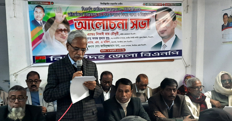 মঙ্গলবার (৩ জানুয়ারি) দুপুর ১২টার দিকে ঝিনাইদহ জেলা বিএনপির কার্যালয়ে জেলা বিএনপির সভাপতি এম এ মজিদের সভাপতিত্বে এ আলোচনা সভা অনুষ্ঠিত হয়। এসময় বিএনপির খুলনা বিভাগীয় সহ-সাংগঠনিক সম্পাদক বাবু জয়ন্ত কুমার কুন্ডু, জেলা বিএনপির সাধারণ সম্পাদক জাহিদুজ্জামান মনাসহ বিভিন্ন পর্যায়ের নেতাকর্মীরা উপস্থিত ছিলেন।