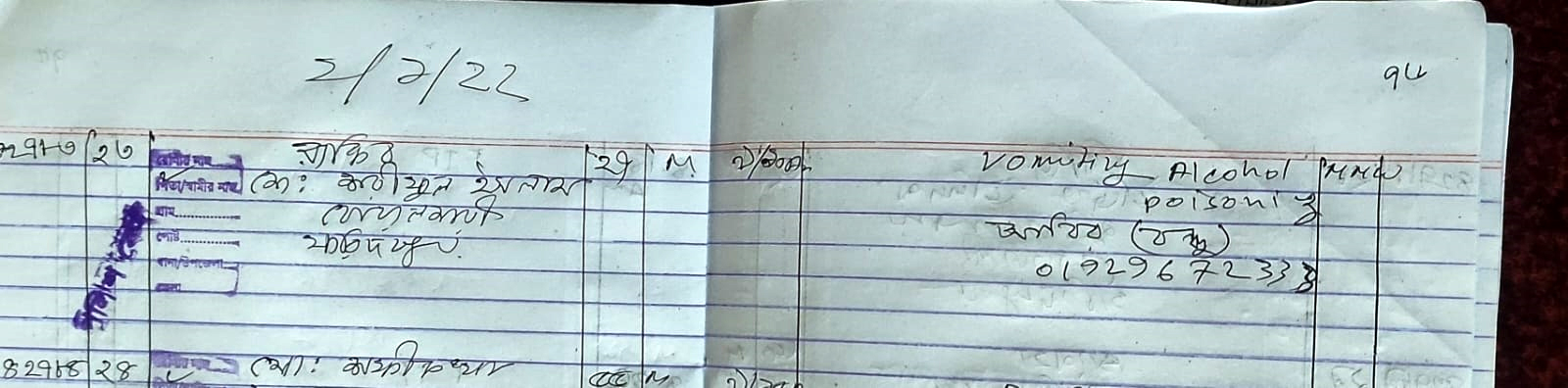 ভর্তি করতে এসে বন্ধু আবির জানান, ঘন ঘন বমি করায় রাকিবুল ইসলামকে হাসপাতালে আনা হয়েছে।