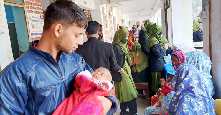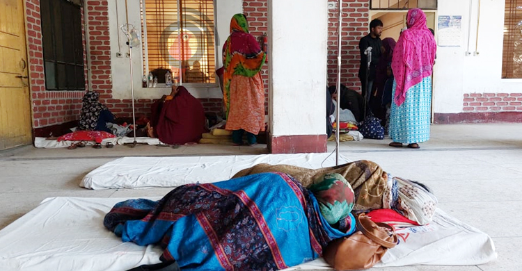 বেড না পেয়ে হাসপাতালের বারান্দায় শিশুরোগী