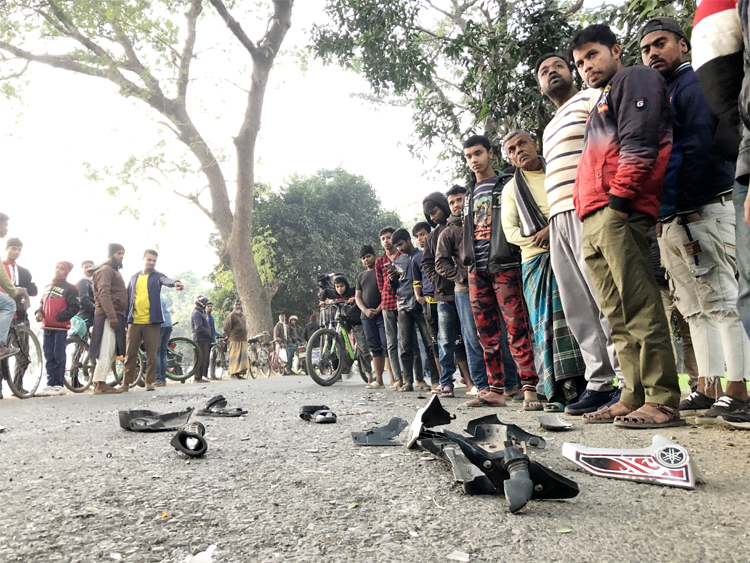 তিনি বলেন, মঙ্গলবার দুপুরে কয়েকজন বন্ধু মিলে পবার মড়মড়িয়া এলাকায় হাঁসের মাংস খেতে যান। খাওয়া-দাওয়া শেষে মোটরসাইকেলযোগে তারা বাড়ি ফিরছিলেন। পথে ডাংগেরহাট মোড়ের একটু আগে একটি ডাম্প ট্রাকের সঙ্গে মোটরসাইকেলটির মুখোমুখি সংঘর্ষ হয়। এতে ঘটনাস্থলেই মারা যান শাহিন ও সোহাগ। স্থানীয়রা গুরুতর আহত অবস্থায় রাকিবকে উদ্ধার করে রাজশাহী মেডিকেল কলেজ (রামেক) হাসপাতালে নিলে কর্তব্যরত চিকিৎসক তাকেও মৃত ঘোষণা করেন।