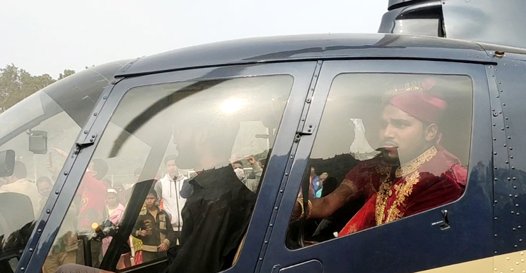 হেলিকপ্টার দেখতে আসা ইয়াকুব আলী বলেন, ‘আমি কখনো হেলিকপ্টারে বরযাত্রী যেতে দেখিনি। আজ স্টেডিয়ামে এত মানুষের ভিড়ে হেলিকপ্টার দেখলাম। দোয়া করি বর-বউ যেন ভালো থাকে।’