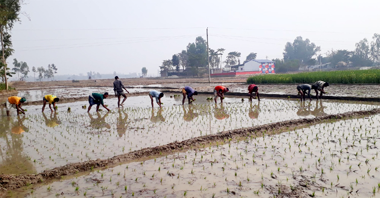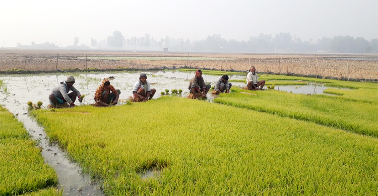 শীত কমতেই দিনাজপুরে বোরো চারা রোপণের ধুম