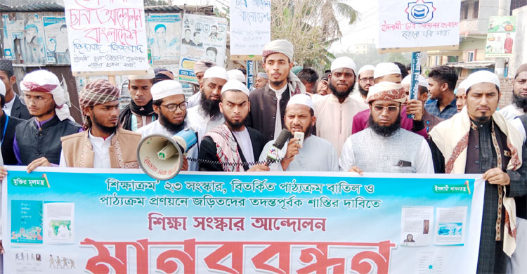 তারা আরও বলেন, শিক্ষকরা হলেন জাতির বিবেক। কিন্তু শিক্ষাক্রম প্রণয়নে জাতির বিবেকরা যখন চৌর্যবৃত্তির আশ্রয় নেন তখন তা জাতির জন্য লজ্জার। ভবিষ্যৎ প্রজন্মের স্বকীয়তা নষ্ট করতে ও আগামীর প্রজন্মকে নৈতিকতা বিবর্জিত জাতিতে পরিণত করার গভীর ষড়যন্ত্র নিয়ে শিক্ষা সিলেবাসে আমূল পরিবর্তন আনা হয়েছে। দেশীয় বোধ-বিশ্বাস বিরোধী সেক্যুলার শিক্ষাক্রম দেশের সর্বস্তরের শিক্ষার্থী অভিভাবক বুদ্ধিজীবী সহ সকল শ্রেণী পেশার মানুষ ঘৃণা ভরে প্রত্যাখ্যান করেছেন। বিতর্কিত পাঠ্যক্রম বাতিল ও পাঠ্যক্রম প্রণয়নে জড়িতদের তদন্ত পূর্বক শাস্তি দিতে হবে, অন্যথায় দেশব্যাপী সর্বস্তরের শিক্ষার্থীদের সঙ্গে নিয়ে তীব্র আন্দোলন গড়ে তোলা হবে।