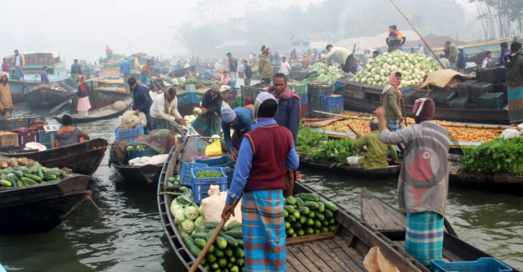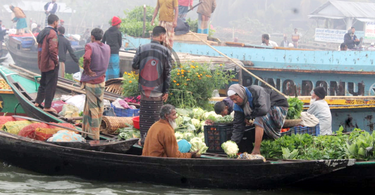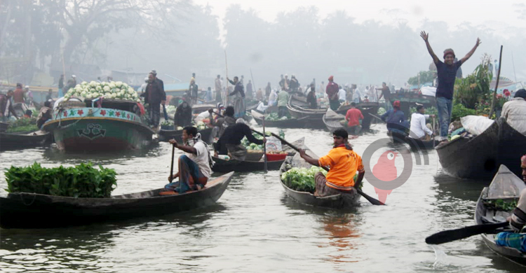 নদীর বুকে শতবর্ষী ভাসমান হাট