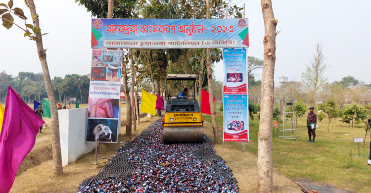 চুয়াডাঙ্গায় বিপুল পরিমাণ মাদক ধ্বংস