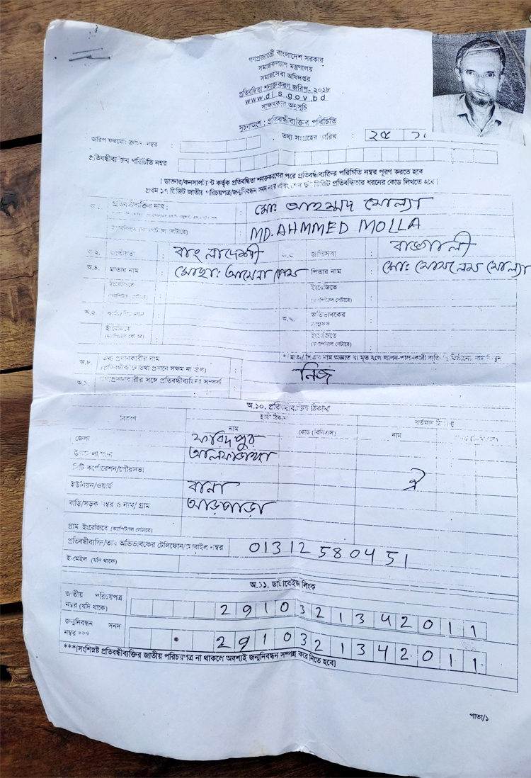 অনেক কষ্টে কার্ড পেলেও ভাতা জোটেনি প্রতিবন্ধী আহম্মদের কপালে