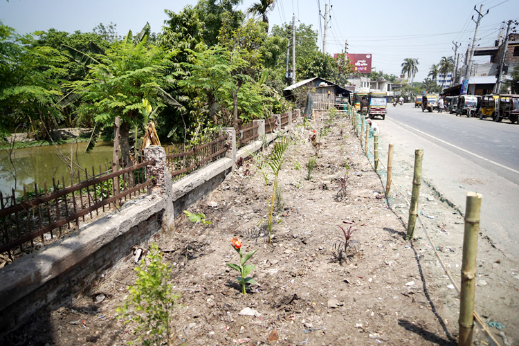 রাস্তার ময়লার ভাগাড় সরিয়ে ফুলের চারা রোপণ