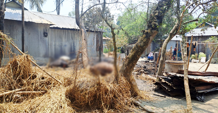 স্থানীয় ও ভুক্তভোগী পরিবার সূত্র জানায়, নজরুল ইসলাম তার গবাদি পশুগুলো গোয়ালঘরে উঠিয়ে পাশের দোকানে চা খেতে যান। পরে স্থানীয়দের চিৎকারে তিনি ছুটে এসে দেখেন গোয়ালঘরে আগুন লেগেছে। এতে দুটি গরু রক্ষা পেলেও পাঁচটি গরু ও দুটি ছাগল পুড়ে যায়।