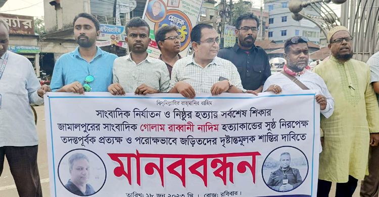 সাংবাদিক নাদিম হত্যার প্রতিবাদে সখীপুরে মানববন্ধন