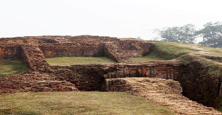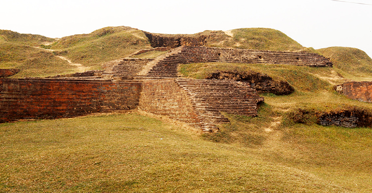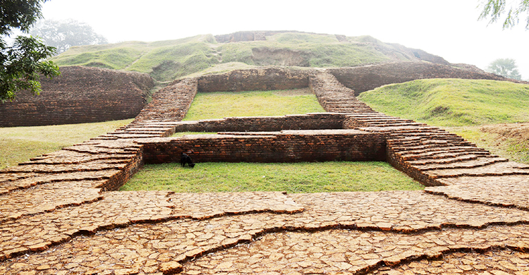 প্রত্নতত্ত্ব অধিদপ্তরের করা স্কেচ থেকে জানা যায়, মোট ৮২টি বদ্ধ প্রকোষ্ঠ ধাপে ধাপে ওপরের দিকে উঠে গেছে। ঢিবির শীর্ষ ধাপটির দেওয়াল ৯ ফুট প্রশস্ত। এর মধ্যে ৬ ফুট ১০ ইঞ্চি প্রস্থের বর্গাকৃতির চারটি প্রকোষ্ঠ আছে। মূল অট্টালিকার প্রধান কক্ষটি এই প্রকোষ্ঠের ওপর নির্মাণ করা হয়েছিল। দ্বিতীয় ধাপের দেওয়াল ৩ ফুট চওড়া, এখানে বিভিন্ন আকৃতির ১৯টি প্রকোষ্ঠ আছে। ৩ ফুট ৯ ইঞ্চি চওড়া দেওয়ালের তৃতীয় ধাপে প্রকোষ্ঠ ১৮টি। সাড়ে ৩ ফুট চওড়া দেওয়ালের চতুর্থ ধাপটিতে ১৯টি বদ্ধ প্রকোষ্ঠ আছে। শেষ ধাপে ১০ থেকে ১৩ ফুট চওড়া দেওয়ালের মধ্যে ২২টি বদ্ধ প্রকোষ্ঠ আছে। তার নিচে প্রায় ১০ ফুট চওড়া প্রদক্ষিণ পথ আছে। মূল মন্দিরের চারদিকে চারটি প্রবেশপথ আছে। এগুলোর মধ্যেও এখন পর্যন্ত সাতটি প্রকোষ্ঠ দেখা গেছে। গঠনশৈলী বিবেচনায় পূর্ব দিকটাই এর মূল প্রবেশপথ ছিল বলে ধারণা করা হয়। এর নির্মাণে যে ইট ব্যবহার করা হয়েছে, তার পরিমাপ ৩৬ সেন্টিমিটার, ২৬ সেন্টিমিটার ও ৬ সেন্টিমিটার। এত বড় ইট এই অঞ্চলের কোনো পুরাকীর্তিতে ব্যবহৃত হতে দেখা যায়নি।