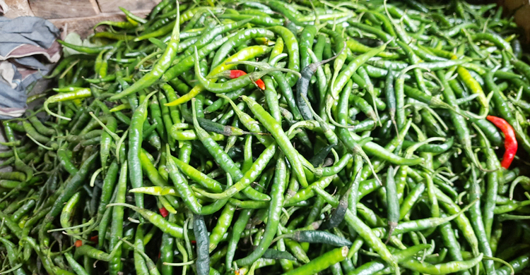 মোংলায় বৃহস্পতিবার (৬ জুলাই) কাঁচা মরিচ বিক্রি হচ্ছে ৫০০ টাকা কেজি দরে। এর আগে বুধবার ছিল ৪০০ টাকা। আর মঙ্গলবার ছিল ৩০০ টাকা কেজি। তবে তার আগে দাম বেড়ে ৮০০ টাকায় ঠেকেছিল।