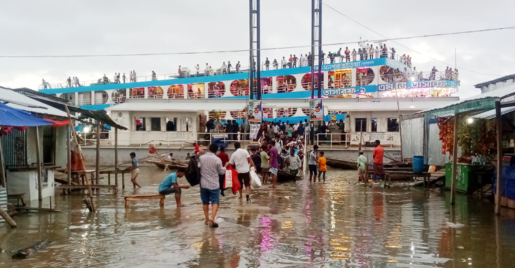 তলিয়ে গেছে ইলিশা লঞ্চঘাট, ভোগান্তিতে যাত্রীরা
