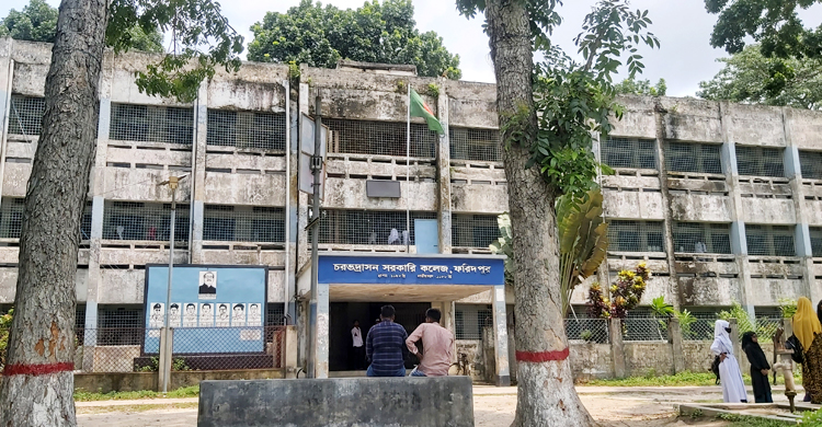 একদিকে হেলে রয়েছে ভবনটি। বের হয়ে আছে শ্রেণিকক্ষের বিমের রড। দোতলায় একটি শ্রেণিকক্ষের বিমের পলেস্তারা খসে পড়েছে। এ অবস্থায় দেখা গেলো শিক্ষার্থীদের। সেখানে ঝুঁকির মধ্যেই চলছে পাঠদান। ফলে ভবন ভেঙে পড়ার আতঙ্কে রয়েছেন শিক্ষক-শিক্ষার্থীরা। ফরিদপুরের চরভদ্রাসন সরকারি কলেজের একটি ভবনের অবস্থা এমন নাজুক।