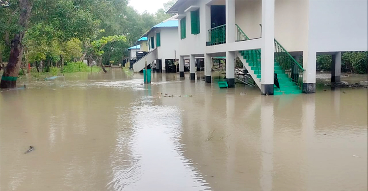 বৈরী আবহাওয়া ও চলতি পূর্ণিমার প্রভাবে স্বাভাবিকের তুলনায় কয়েক ফুট উচ্চতার জলোচ্ছ্বাসে প্লাবিত হচ্ছে সুন্দরবন। টানা ৪ দিন ধরে অস্বাভাবিক জোয়ারের পানিতে তলাচ্ছে সুন্দরবন পূর্ব বনবিভাগের দুবলার চর ও দেশের একমাত্র বন্যপ্রাণী প্রজনন কেন্দ্র এবং পর্যটনকেন্দ্র করমজল। এতে এখন পর্যন্ত বনবিভাগের কোনো স্থাপনার ক্ষয়ক্ষতি না হলেও বিশাল বনজুড়ে কোনো বন্যপ্রাণীর ক্ষয়ক্ষতি হয়েছে কি না তা নিশ্চিত জানাতে পারেনি বনবিভাগ।