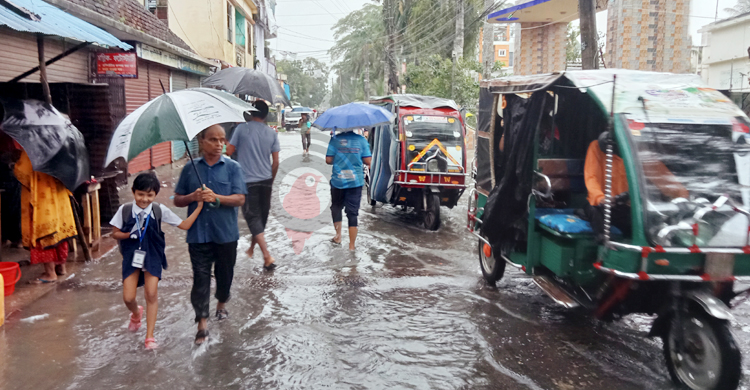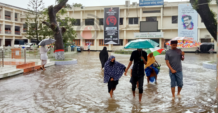 টানা বর্ষণে ঝালকাঠি শহরে হাঁটুজল