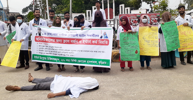 স্বতন্ত্র শিক্ষাবোর্ড গঠন, কর্মসংস্থান সৃজন ও দ্রুত নিয়োগসহ চার দফা দাবিতে ক্লাস বর্জন ও ছাত্র ধর্মঘট পালন করছেন কুড়িগ্রামের ইন্টার্ন ডিপ্লোমা চিকিৎসক ও ম্যাটস শিক্ষার্থীরা।